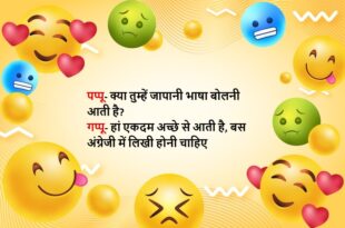 पप्पू (गप्पू से)- यार पत्नी के पैर दबाना खिदमत होती है या मोहब्बत? गप्पू- अगर पत्नी अपनी हो तो खिदमत और अगर दूसरे की हो तो मोहब्बत…..😆🤣🤣🤣🤣😝😝😝 ******************************************************************************************* बाप नालायक तू फेल कैसे हो गया? बेटा- पेपर में मास्टरजी ने सवाल ही ऐसे दिए थे, जो मैंने कभी सुने ही नहीं थे बाप- तो तूने जवाब कैसे-कैसे लिखे? बेटा- मैं …