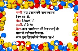 चिंटू (पिंटू से)- ये बात समझ में नहीं आती कि शराब की दुकान का वास्तुशास्त्र कौन बनाता है? चाहे नाले पर हो, दक्षिण दिशा में हो, सामने गड्ढा हो बिजली का ट्रांसफार्मर हो या कैसा भी वास्तु दोष हो दुकान पर भीड़ हमेशा बनी ही रहती है…..😆🤣🤣🤣🤣😝😝😝 ***************************************************************************************** बच्चा- पापा आपने मम्मी में ऐसा क्या देखा जो शादी कर ली? …