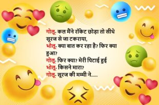 लड़का- मैं तुम्हारे साथ शादी नहीं कर सकता घर वाले नहीं मान रहे हैं लड़की- तुम्हारे घर मैं कौन-कौन है? लड़का- एक पत्नी और दो बच्चे……😆🤣🤣🤣🤣😝😝😝 **************************************************************************************** संजू अपनी गर्लफ्रेंड के पिता से मिलने गया लड़की का पिता- मैं नहीं चाहता कि मेरी बेटी अपनी पूरी जिंदगी एक मूर्ख इंसान के साथ गुज़ारे, संजू- बस अंकल बस, इसीलिए तो मैं …