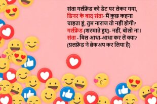 संता- मैं जो भी काम शुरू करता हूं, मेरी बीवी बीच में आ जाती है। बंता- तू ट्रक चला कर देख भाई, शायद किस्मत साथ दे। (संता ने ट्रक खरीद लिया है)😆🤣🤣🤣🤣😝😝😝 ************************************************************************************** संता गर्लफ्रेंड को डेट पर लेकर गया, डिनर के बाद संता- मैं कुछ कहना चाहता हूं, तुम नाराज तो नहीं होगी? गर्लफ्रेंड (शरमाते हुए)- नहीं, बोलो ना। …