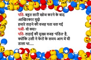 दुकानदार- क्या चाहिए? आदमी- मुझे बीवी से लड़ने के लिए ताकत और हिम्मत चाहिए दुकानदार- साहब को एक क्वार्टर, सोडा और मूंगदाल का पैकेट दो…😆🤣🤣🤣🤣😝😝😝 ************************************************************************************ टीचर- चिंटू कहां है तुम्हारा कॉपी और पेन? चिंटू- मैंम जबसे आपको देखा, क्या कॉपी और क्या पेन, तेरे मस्त-मस्त दो नैन, मेरे दिल का ले गए चैन…..😆🤣🤣🤣🤣😝😝😝 ************************************************************************************ पति-पत्नी हाथ पकड़े बाजार में …