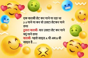 जीजा बालकनी में खड़ा-खड़ा मस्ती से गा रहा था ‘पंछी बनूं उड़ता फिरूं मस्त गगन में…आज मैं आजाद हूं दुनिया के चमन में’ इतने में पास में खड़ी साली बोली- घर में ही उड़ो जीजा जी, सामने वाली भाभी मायके गई है….😆🤣🤣🤣🤣😝😝😝 ************************************************************************************ मटरू- आपने नर्स बहुत अच्छी रखी है, उसके हाथ लगाते ही मैं ठीक हो गया डॉक्टर- मैं …