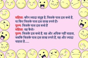 पति- चलो एक गेम खेलते हैं पत्नी- क्या? पति- तुम 4 आदमियों के नाम लिखो, जिन्हें तुम पसंद करती हो और मैं 5 औरतों के लिखता हूं पत्नी- ठीक है पति द्वारा लिखे गए नाम- पत्नी की बहन सीता, पत्नी की मौसी की बेटी टीना, पत्नी की चाची की छोटी बेटी मिंकी, पत्नी के मामा की बेटी राधा पति द्वारा …