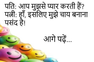 बॉस: रिपोर्ट कहाँ है? कर्मचारी: सर, रिपोर्ट तो बन रही है। बॉस: कब तक? कर्मचारी: जैसे ही टाइम मिलता है!😊😊😊 **************************************** पप्पू: मम्मी, मैं क्रिकेट खेलूँ? मम्मी: पहले होमवर्क पूरा करो। पप्पू: होमवर्क खेलने के बाद!😊😊😊 **************************************** पति: आप मुझसे प्यार करती हैं? पत्नी: हाँ, इसलिए मुझे चाय बनाना पसंद है!😊😊😊 **************************************** दोस्त 1: तुम्हारी कार बहुत अच्छी है। दोस्त …