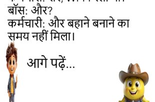 गर्लफ्रेंड: सुनो, मुझे गिफ्ट चाहिए। बॉयफ्रेंड: लो Wi-Fi का पासवर्ड। 😂 ************************************************** टीचर: बताओ, आलस किसे कहते हैं? पप्पू: जब मोबाइल हाथ में हो और चार्जर पास हो… फिर भी चार्ज न करो। 😂 ************************************************** पति: सुनो, खाना मिला? पत्नी: हाँ, फ्रिज में रख दिया है। पति: पर मैं ऑफिस में हूँ। पत्नी: तो मैं भी किचन में ही हूँ। …