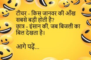 पत्नी – मैं मायके जा रही हूँ। पति – ठीक है, रास्ता बताऊँ?😊😊😊😊 ************************************************** पप्पू – मम्मी, मुझे भी दादी जैसा फोन चाहिए। मम्मी – क्यों? पप्पू – क्योंकि वो कभी चार्ज नहीं होता।😊😊😊😊 ************************************************** टीचर – किस जानवर की आँख सबसे बड़ी होती है? छात्र – इंसान की, जब बिजली का बिल देखता है।😊😊😊😊 ************************************************** पत्नी – मुझे गिफ्ट …