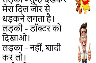 टीचर – रामू, पढ़ाई क्यों नहीं करता? रामू – क्योंकि किताबें कहती हैं कि “संतोषी सदा सुखी”।😊😊😊😊 *********************************** डॉक्टर – तुम इतने टेंशन में क्यों हो? मरीज – बीवी ने कहा है, मर जाओ, और मैं उनकी बात कभी टालता नहीं।😊😊😊😊 *********************************** लड़का – तुम्हें देखकर मेरा दिल जोर से धड़कने लगता है। लड़की – डॉक्टर को दिखाओ। लड़का – …