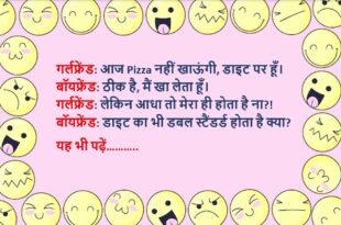 गर्लफ्रेंड: चलो मूवी देखते हैं! बॉयफ्रेंड: ठीक है, तुम्हें कौन सी पसंद है? गर्लफ्रेंड: कोई भी चलेगी, लेकिन VIP सीट होनी चाहिए। बॉयफ्रेंड: जानू, ये प्यार है या लोन की EMI?😆🤣🤣🤣🤣😝😝😝 ************************************************************************************ गर्लफ्रेंड: इस “Pooja” की हर फोटो पर तुमने Like क्यों किया है? बॉयफ्रेंड: मैं सबको करता हूं… गर्लफ्रेंड: अच्छा? अब देखो मैं किस-किस को “Block” करती हूं!😆🤣🤣🤣🤣😝😝😝 ************************************************************************************ …