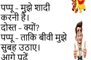पत्नी – सुनो जी, मैं कैसी लग रही हूं? पति – झगड़ा करने का मूड है क्या?😊😊😊😊 ****************************************** पप्पू – यार, तुम्हारे जूते तो चमक रहे हैं। गोलू – हाँ, क्योंकि EMI भर दी है।😊😊😊😊 ****************************************** बच्चा – मम्मी, मुझे नींद नहीं आ रही। मम्मी – तो जाकर किताब पढ़ ले। बच्चा – ओह, Thanks, अब आ जाएगी।😊😊😊😊 ****************************************** पति …