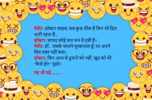 पेशेंट: डॉक्टर साहब, दिल बहुत भारी रहता है। डॉक्टर: क्या खाया था कल रात? पेशेंट: उसकी शादी की फोटो देखी थी… डॉक्टर: बेटा, ये एसिडिटी नहीं, यादों की जलन है।😆🤣🤣🤣🤣😝😝😝 ************************************************************************************ पेशेंट: डॉक्टर साहब, मम्मी दिन भर चुप रहती हैं, पहले बहुत बात करती थीं… डॉक्टर: आपने आख़िरी बार कब उनके पास बैठकर बिना मोबाइल के बातें कीं? पेशेंट: याद …