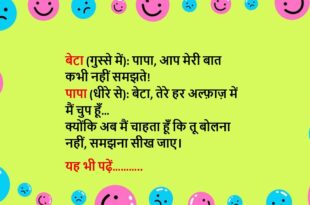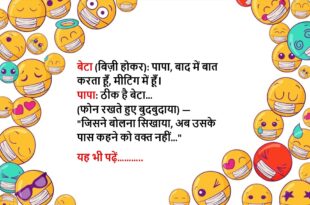 बेटा (फोन में बिज़ी): पापा, आप हमेशा चुप क्यों रहते हो? पापा: क्योंकि बेटा, अब तू “टाइप” ज़्यादा करता है, और “सुनता” कम है… बातें अब नोटिफिकेशन में दबी रह जाती हैं।😆🤣🤣🤣🤣😝😝😝 ************************************************************************************ बेटा: पापा, मेरी पहली तनख्वाह आई है, आपको क्या दूँ? पापा (मुस्कराकर): बस इतना दे — “तेरी पहली कमाई में तेरा बाप ज़िंदा रहे।”😆🤣🤣🤣🤣😝😝😝 ************************************************************************************ बेटा: पापा, …