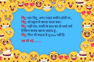 चिंटू: मम्मी, मुझे स्कूल में किसी से प्यार हो गया है! मम्मी: वाह बेटा, कौन है वो लड़की? चिंटू: लड़की नहीं मम्मी… Tiffin वाली आंटी! वो हर दिन एक्स्ट्रा समोसा देती है!😆🤣🤣🤣🤣😝😝😝 ************************************************************************************ पिंटू डॉक्टर के पास गया – पिंटू: डॉक्टर साहब, मुझे भूलने की बीमारी हो गई है। डॉक्टर: कब से? पिंटू: कब से क्या?😆🤣🤣🤣🤣😝😝😝 ************************************************************************************ चिंटू: तू मेरा …