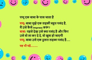 लड़का (लड़की से)- शादी हमेशा अपनी से बड़ी लड़की से ही करनी चाहिए लड़की- ऐसा क्यों? लड़का- जब भी वो डांटें तो दिल कहे, कोई नहीं यार बड़ी है……😆🤣🤣🤣🤣😝😝😝 ************************************************************************************ लड़की- क्या तुम प्यार में ताजमहल बनवा सकते हो? पप्पू- प्यार में ताजमहल बनवाना जरुरी नहीं है, आप शॉपिंग करवा कर भी अपनी मुमताज को खुश रख सकते हैं पप्पू …