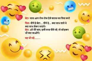 पति को काफी हिचकी आ रही थी पत्नी ने पति की तरफ घूर कर देखा और बोली- मैं तो यहां हूं फिर बाहर कौन मरी जा रही है, तुम्हारे लिए….😆🤣🤣🤣🤣😝😝😝 ************************************************************************************ पति- तुम मायके जाती हो तो कैसा महसूस करती हो? पत्नी- हम औरतों की उम्र 45 वाली क्यों न हो, मायके में पैर रखते ही 16 की उम्र वाली …