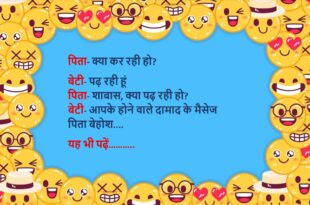 दो सहेलियां अपने-अपने बॉयफ्रेंड की तारीफ कर रही थीं रिंकी- मेरा बॉयफ्रेंड बहुत हैंडसम है पिंकी- मेरे बॉयफ्रेंड का तो कोई बाल भी बांका नहीं कर सकता रिंकी- अच्छा वो इतना बहादुर है? पिंकी- अरे नहीं, वो गंजा है……😆🤣🤣🤣🤣😝😝😝 ************************************************************************************ पत्नी- सुनो जी, आपको नहीं लगता भगवान ने मुझे फुर्सत में बनाया होगा पति- फालतू के काम फुर्सत में ही …
