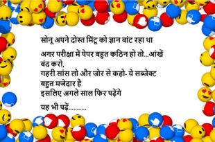 चिंटू- मम्मी मेरे एक बात समझ नहीं आती मां- क्या? चिंटू- आप और पापा सीधे-सीधे कमरा साफ करने को क्यों नहीं बोलते? बस यही कहते हो- कुत्ता भी अपनी जगह साफ करके बैठता है……😆🤣🤣🤣🤣😝😝😝 ************************************************************************************ पप्पू (गप्पू से)- यार लोग पूछते हैं, आसमान में तारे कितने हैं? कोई नहीं पूछता देश में कुंवारे कितने हैं……..😆🤣🤣🤣🤣😝😝😝 ************************************************************************************ टीचर ने पप्पू की …