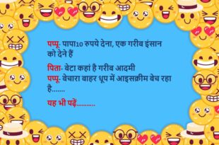 लड़की- तू जहां-जहां चलेगा मेरा साया साथ होगा लड़का- मुझे तो पहले ही लगता था कि तू भूतनी है……😆🤣🤣🤣🤣😝😝😝 ************************************************************************************ दो लड़कियां बस में सीट के लिए लड़ रही थीं कंडक्टर- अरे क्यों लड़ रही हो, जो उम्र में सबसे बड़ी है वो बैठ जाए फिर क्या, पूरे रास्ते दोनों खड़ी ही रहीं……😆🤣🤣🤣🤣😝😝😝 ************************************************************************************ मोहन (सोहन से)- यार पिताजी ने …