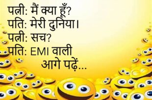 पत्नी: मैं रूठ जाऊँ तो?पति: GPS ऑन कर दूँगा।पत्नी: क्यों?पति: ढूंढने के लिए 😄 ***************************************डॉक्टर: शराब पीते हो?मरीज: सिर्फ त्योहार पर।डॉक्टर: कौन सा?मरीज: रोज़ 😆 ***************************************पापा: मोबाइल क्यों हाथ में है?बेटा: पढ़ाई कर रहा हूँ।पापा: कौन सा सब्जेक्ट?बेटा: ऑनलाइन 😎 ***************************************दोस्त: तू इतना शांत क्यों रहता है?मैं: अंदर तूफान है।दोस्त: फिर बाहर क्या है?मैं: नींद 😴 ***************************************पत्नी: मैं क्या हूँ?पति: …