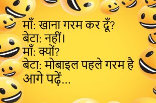 टीचर: सबसे आलसी कौन?स्टूडेंट: मैं।टीचर: कैसे?स्टूडेंट: हाथ उठाने में भी सोच रहा हूँ 😴 ***************************************पत्नी: मैं कैसी लग रही हूँ?पति: कसम से…पत्नी: आगे बोलो!पति: कसम खा ली है 😄 ***************************************दोस्त: इतना खुश क्यों है?मैं: आज अलार्म नहीं बजा।दोस्त: फिर उठा कैसे?मैं: उठा ही नहीं 😆 ***************************************माँ: फोन छोड़ दे।बेटा: बस आख़िरी बार।माँ: रोज़ आख़िरी बार होता है 😑 ***************************************टीचर: होमवर्क …