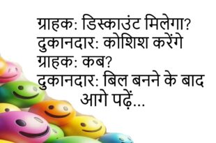 पत्नी: देर क्यों हुई? पति: ट्रैफिक था पत्नी: कहाँ? पति: बहाने में 😆 ********************************** बॉस: एक्सेल भेजी? कर्मचारी: हाँ बॉस: कहाँ? कर्मचारी: ईमानदारी से 😜 ********************************** ग्राहक: डिस्काउंट मिलेगा? दुकानदार: कोशिश करेंगे ग्राहक: कब? दुकानदार: बिल बनने के बाद 😂 ********************************** दोस्त: फोन साइलेंट क्यों? दोस्त: शांति चाहिए दोस्त: कितनी? दोस्त: दुनिया से ज्यादा 😅