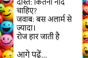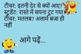टीचर: इतनी देर से क्यों आए?स्टूडेंट: रास्ते में सपना टूट गया।टीचर: मतलब? अलार्म बजा ही नहीं 😂 ********************************** डाइट पर जाने का फैसला हुआ।फ्रिज ने अंदर से आवाज दी –“सोच लो, दोस्ती तो पुरानी है” 😆 ********************************** मोबाइल गिरा लेकिन टूटा नहीं।दिल खुश हुआ एक सेकंड को।फिर पता चला कवर टूट गया 😜 ********************************** दोस्त: पढ़ाई कैसी चल रही है?जवाब: …