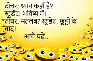 टीचर: ध्यान कहाँ है? स्टूडेंट: भविष्य में। टीचर: मतलब? स्टूडेंट: छुट्टी के बाद।😊😊😊😊 ************************************** दोस्त: इतना खुश क्यों है? लड़का: सैलरी आई है। दोस्त: खर्च? लड़का: अभी शॉक में है।😊😊😊😊 ************************************** दोस्त: जिम क्यों जॉइन किया? लड़का: फोटो अच्छी आएगी। दोस्त: सेहत? लड़का: फिल्टर संभाल लेगा।😊😊😊😊 ************************************** मां: सब्जी क्यों नहीं खा रहा? बेटा: उसमें विटामिन नहीं दिख रहा। मां: …