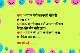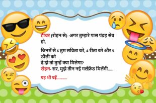 एक लड़का रात को देर से घर लौटा मां- कहां से आ रहा है? लड़का- कैबरे डांस देखने गया था मां- हे भगवान, तूने कोई ऐसी चीज तो नहीं देखी जो तुझे नहीं देखनी चाहिए थी? लड़का- हां मैंने देखी थी मां- क्या देखा? लड़का- पापा……😆🤣🤣🤣🤣😝😝😝 ************************************************************************************ पत्नी- ये तुम हर रोज ऊपर हवा में पत्थर क्यों मारते हो? पति- …
