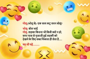 भाभी- फोन पे इतनी धीमी आवाज में किससे बात कर रहे हो? देवर- बहन है भाभी- तो फिर इतनी धीमी आवाज में किस लिए देवर- बहन आपकी है, इसलिए……😆🤣🤣🤣🤣😝😝😝 ************************************************************************************ भाभी- देवर जी मुझे किसी की नजर लग गई, मैं क्या करूं देवर- खुद को दुनिया की बुरी नजरों से बचाया करो सिर्फ आंखों में काजल काफी नहीं है। गले …
