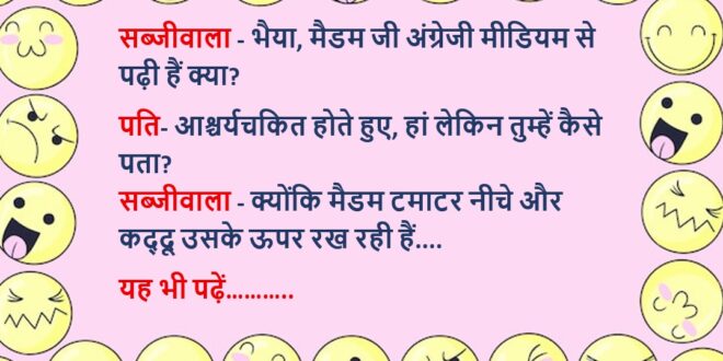 सब्जीवाला – भैया, मैडम जी अंग्रेजी मीडियम से पढ़ी हैं क्या?