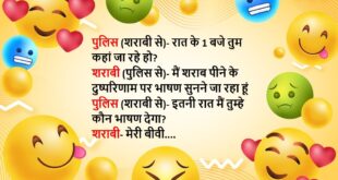 देवर- क्या हुआ भाभी? भाभी- पता नही कौन से मनहूस दिन ये फोन खरीदा था, बार-बार खराब हो जाता है देवर- आपके जन्मदिन पर ही तो लिया था….😆🤣🤣🤣🤣😝😝😝 ************************************************************************************ भाई (बहन से)- जा मेरे लिए 1 कप चाय बनाकर ला बहन- नहीं, 25 दिसंबर 2023 बुधवार को शाम 7:12 मिनट पर, मैंने तुमसे 1 गिलास पानी मांगा था, तो तुमने …