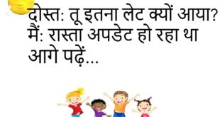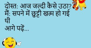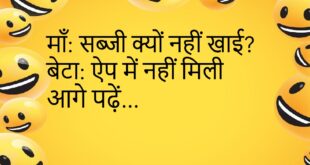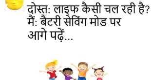 डॉक्टर: ज्यादा हंसते क्यों हो?मरीज: बिल देखकर 😆 ***************************************** माँ: पानी क्यों नहीं पिया?बेटा: बोतल सो रही थी 😂 ***************************************** लड़की: तुम क्या सोच रहे हो?लड़का: कुछ नहीं।दिमाग रेस्ट मोड में 😴 ***************************************** टीचर: चुप क्यों हो?स्टूडेंट: सर, जवाब लोड हो रहा है 😂 ***************************************** पति: आज खाना अच्छा नहीं है।पत्नी: तुम्हारी शिकायत जैसा 😜 दोस्त: लाइफ कैसी चल …