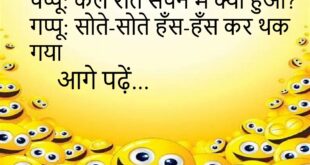 पप्पू: कल रात सपने में क्या हुआ?गप्पू: सोते-सोते हँस-हँस कर थक गया 😄 *********************************** बच्चा: टीवी क्यों बंद किया?मम्मी: नींद आ गई।बच्चा: टीवी भी सो गया 😆 *********************************** दोस्त: मूड अच्छा क्यों है?मैं: क्योंकि WiFi कनेक्ट हो गया 😄 *********************************** टीचर: ये सवाल इतना आसान क्यों है?छात्र: क्योंकि जीवन में सब आसान होना चाहिए 😆 *********************************** पापा: नौकरी कैसी चल …