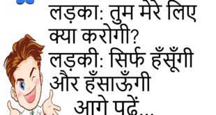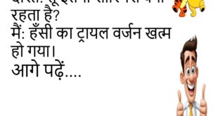 लड़का: तुम हमेशा खुश क्यों रहते हो?लड़की: क्योंकि मैं दुख को भूलकर भी नहीं देखती 😄 *********************************** टीचर: तुम्हारा नाम क्यों गलत लिखा है?छात्र: क्योंकि जीवन में भी सही सही नहीं लिखा 😆 *********************************** पप्पू: स्कूल क्यों नहीं गया?गप्पू: क्योंकि नींद की छुट्टी थी 😄 *********************************** बच्चा: माँ, पानी पीना है।माँ: पी लिया?बच्चा: अभी तक पानी खोज रहा हूँ 😆 …
