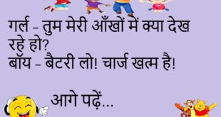 गर्लफ्रेंड: मुझे गिफ्ट में क्या दोगे? बॉयफ्रेंड: टाइम! गर्लफ्रेंड: टाइम क्या होता है? बॉयफ्रेंड: वही जो तुम्हारे पास कभी नहीं होता! ⏰ ********************************** टीचर: पप्पू, नींद क्यों आ रही है? पप्पू: सर, सपना अधूरा रह गया था, पूरा करने जा रहा हूँ! 😴 ********************************** बच्चा: मम्मी, आज स्कूल नहीं जाऊँगा! मम्मी: क्यों? बच्चा: क्योंकि टीचर हमेशा बोर्ड की बात करती …