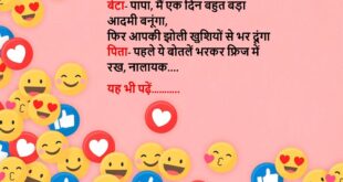 टीचर: बच्चों, बताओ “आई लव यू” हिंदी में कैसे कहेंगे? पप्पू: “मैं तुझसे सरकारी नौकरी की तरह मोहब्बत करता हूँ — मिलती नहीं लेकिन उम्मीद नहीं छोड़ता!” 😂 ********************************** पत्नी: सुनिए, मैं कैसी लग रही हूँ? पति: तुम्हें देखकर तो मोबाइल की याद आ गई! पत्नी: क्यों? पति: बस चार्ज खत्म होते ही बंद हो जाती हो! 😅 ********************************** डॉक्टर: …