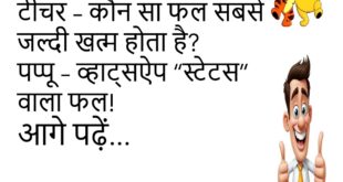टीचर- तुम क्लास में सो क्यों रहे हो? पप्पू- आपकी आवाज बहुत मीठी है मैम, सुनकर नींद आ गई टीचर- तो बाकी बच्चों को क्यों नींद नहीं आ रही है? पप्पू- क्योंकि वो आपको सुन ही नहीं रहे हैं……😆🤣🤣🤣🤣😝😝😝 ************************************************************************************ टीचर- बताओ छिपकली दीवार पर क्यों चलती है? पप्पू- सर हम भी तो जमीन पर चलते हैं, पर छिपकली ने …