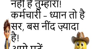 बॉस – तुम ऑफिस देर से क्यों आए? कर्मचारी – सर, सपने में ऑफिस आ गया था, थक गया! 😴 ******************************************** बॉस – आज लेट क्यों आए? कर्मचारी – सर, अलार्म में लिखा था “Wake Up” पर ये नहीं लिखा था “कितने बजे”! 😂 ******************************************** मीटिंग में – “किसी के पास कोई सवाल है?” कर्मचारी – जी हाँ, लंच कब …