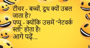 टीचर – पप्पू, “आई लव यू” हिंदी में बोलो! पप्पू – मैं तुझसे सरकारी नौकरी की तरह मोहब्बत करता हूँ! ❤️ ********************************** मम्मी – बेटा, तुम सो क्यों नहीं रहे? बेटा – नींद का “नेटवर्क डाउन” है! 😴 ********************************** बॉस – काम पूरा हुआ? कर्मचारी – जी, अब भगवान भरोसे है! बॉस – अच्छा, तो भगवान को मेल कर दो …