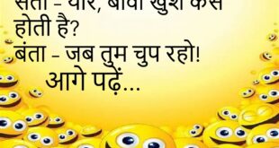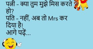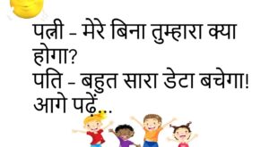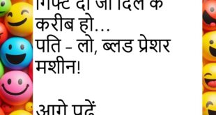 पत्नी – मुझे कुछ ऐसा गिफ्ट दो जो दिल के करीब हो… पति – लो, ब्लड प्रेशर मशीन!😂😂😂😂 ************************************ पति – तुम्हारा मूड हमेशा खराब क्यों रहता है? पत्नी – क्योंकि तुम कभी चार्ज नहीं करते – प्यार से या मोबाइल से!😂😂😂😂 ************************************ पत्नी – सुनो, कल तुम्हारा दोस्त घर आया था, बहुत बातें कर रहा था! पति – तो …