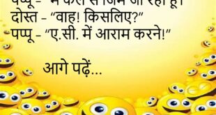 दोस्त – “तेरी आंखें लाल क्यों हैं?” पप्पू – “क्योंकि रात भर ‘सोने’ की कोशिश करता रहा, लेकिन नींद नहीं आई!”😂😂😂😂 ************************************ पप्पू – “तूने परीक्षा में क्या लिखा?” गप्पू – “जो सवाल था वही!”😂😂😂😂 ************************************ दोस्त – “तेरी GF नाराज़ है?” पप्पू – “नहीं, बस बोलना बंद कर दिया है – यानी Wi-Fi बंद!”😂😂😂😂 ************************************ पप्पू – “मैंने सपने …
