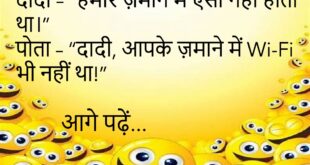 मां – “बेटा, पढ़ाई की?” बेटा – “नहीं मां, आज मोबाइल की बारी थी!”😂😂😂😂 ************************************ पापा – “रिजल्ट कैसा आया?” बेटा – “पापा, पासवर्ड प्रोटेक्टेड है!”😂😂😂😂 ************************************ बेटा – “पापा, आप कौन-सा फोन यूज़ करते हो?” पापा – “लैंडलाइन!”😂😂😂😂 ************************************ दादी – “हमारे ज़माने में ऐसा नहीं होता था।” पोता – “दादी, आपके ज़माने में Wi-Fi भी नहीं था!”😂😂😂😂 ************************************ …