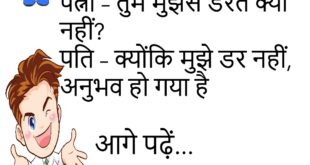 पत्नी – तुम मुझसे डरते क्यों नहीं? पति – क्योंकि मुझे डर नहीं, अनुभव हो गया है!😂😂😂😂 ************************************ पति – खाना अच्छा बना है क्या? पत्नी – मुझे तो अच्छा लग रहा है! पति – हां, लेकिन मुझे तो खाना चाहिए था!😂😂😂😂 ************************************ बॉस – कल क्यों नहीं आए? कर्मचारी – सर, सपना आया था कि मैं ऑफिस आया था, …