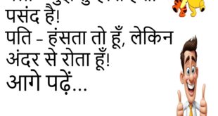 लड़का – I love you! लड़की – Sorry, मैं भाई बोलती हूँ सबको! लड़का – अच्छा तो राखी कब बांधेगी? ***************************************** पप्पू – आज पापा ने मुझे दौड़ा-दौड़ाकर मारा! टीचर – क्यों? पप्पू – क्योंकि मैं उनसे तेज़ भाग गया था! ***************************************** पत्नी – तुमसे शादी करके मेरी ज़िंदगी बदल गई! पति – मेरी भी, अब मैं भी मुस्कुराना भूल …