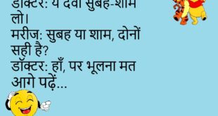 दोस्त: कल रात कैसे सोए?मैं: सपनों में जमीं पर गिरे, नींद तो आ ही गई 😆 *********************************** बॉस: तुम ऑफिस देर से क्यों आए?कर्मचारी: ट्रैफिक था… इंटरनेट ट्रैफिक 😄 *********************************** बच्चा: माँ, स्कूल में सब मुझे हँसते हैं।माँ: क्यों बेटा?बच्चा: मैंने आज मुँह धोकर नहीं आया 😆 *********************************** डॉक्टर: ये दवा सुबह-शाम लो।मरीज: सुबह या शाम, दोनों सही है?डॉक्टर: हाँ, …