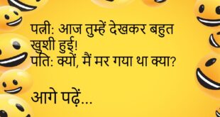 पत्नी: सुनो, मेरी नई ड्रेस कैसी लगी? पति: जैसे नेटवर्क कमजोर हो — थोड़ा टाइम दो समझ में आएगा 😆 ************************************************ बॉस: ऑफिस क्यों नहीं आए? कर्मचारी: सर, मोबाइल में अलार्म था, मोटिवेशन नहीं 😴 ************************************************ बच्चा: मम्मी, ये शादी क्या होती है? मम्मी: जहाँ वाई-फाई पासवर्ड भी पूछने से डर लगता है 😅 ************************************************ टीचर: बताओ, सबसे तेज़ क्या …