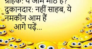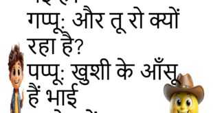 पप्पू: बीवी मायके गई है। गप्पू: और तू रो क्यों रहा है? पप्पू: खुशी के आँसू हैं भाई 😂 ************************************************ पति: आज खाना बहुत स्वादिष्ट है! पत्नी: मतलब आज ऑफिस में लंच नहीं मिला 😏 ************************************************ डॉक्टर: तुम्हें क्या परेशानी है? मरीज: बीवी की बातें सुनते-सुनते कान पक गए 😆 ************************************************ बॉस: तुम्हें टाइम पर क्यों नहीं आता? कर्मचारी: सर, …