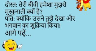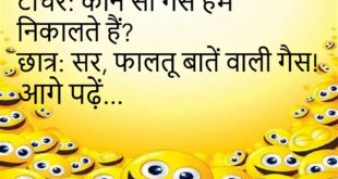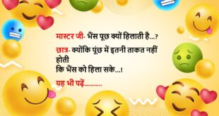 टीचर: “हाथी” पर एक वाक्य बनाओ। छात्र: हाथी बहुत बड़ा होता है, इसलिए हम उसे “भाईसाहब” कहते हैं! 🐘 ************************************* पुलिस: चोरी कब हुई? आदमी: जब मैं घर पर नहीं था। पुलिस: अच्छा हुआ, वरना तुम भी चोरी हो जाते! 😂 ************************************* पत्नी: सुनो, मैं मायके जा रही हूँ। पति: गूगल मैप ऑन कर लो, रास्ता भूल मत जाना। 😏 …