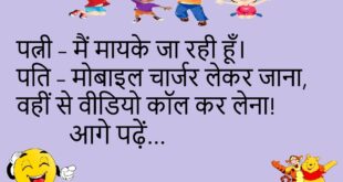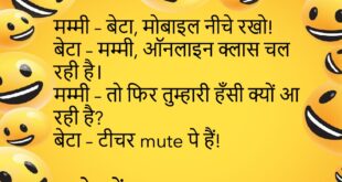 बच्चा – मम्मी, मेरे बाल क्यों झड़ रहे हैं? मम्मी – बेटा, ज़्यादा मोबाइल मत देखा करो। बच्चा – पर मम्मी, ये तो आप WhatsApp पे भेजती हो! 😜 ***************************************** पप्पू – मम्मी, मेरा नाम “Google” रख दो। मम्मी – क्यों बेटा? पप्पू – सब मुझसे सवाल पूछते रहते हैं! 😂 ***************************************** पत्नी – सुनो जी, मुझे एक diamond ring …