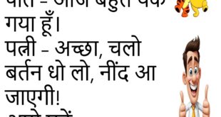 पति – सुनो, मेरा वजन बढ़ गया है। पत्नी – तुम्हारा नहीं, धैर्य बढ़ा है मेरा! ***************************************** टीचर – बेटा, दो और दो कितने होते हैं? पप्पू – शादी के बाद चार नहीं, साठ खर्चे होते हैं! ***************************************** दोस्त – यार, आजकल नींद नहीं आती। दूसरा – शादी कर लो, फिर नींद तो छोड़ो, चैन भी नहीं मिलेगा! ***************************************** मम्मी …
