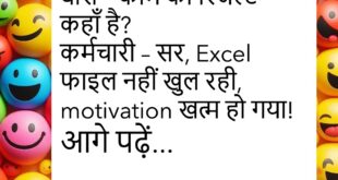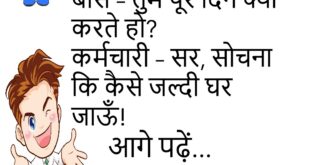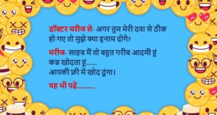 पप्पू – मम्मी, मुझे पैसे चाहिए। मम्मी – क्यों? पप्पू – किसी गरीब की मदद करनी है। मम्मी – कौन गरीब? पप्पू – मैं खुद! 😅 ***************************************** बॉस – तुम्हारा सपना क्या है? कर्मचारी – कि एक दिन आप छुट्टी पर जाएं और मैं प्रमोशन पा लूँ! ***************************************** डॉक्टर – तुम परेशान क्यों हो? मरीज – गर्लफ्रेंड कहती है ‘तुम …